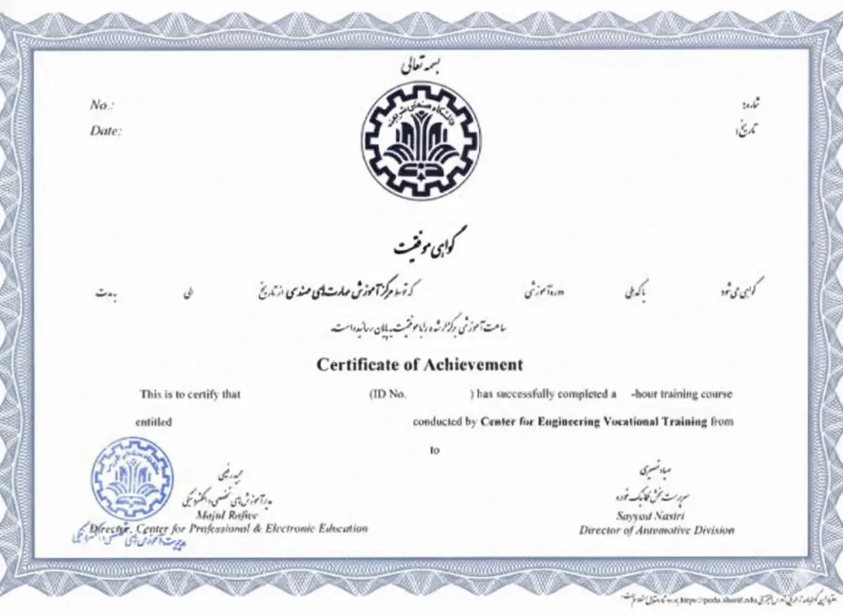 یکی از دغدغههای مهم هنرجوها بعد از پایان آموزش این است که دوره مکانیک خودرو خارجی که گذراندهاند، فقط یک تجربه شخصی نباشد و بتوانند آن را در مسیر شغلی هم استفاده کنند. در دورههای ایمگ بعد از پایان آموزش مکانیک خودرو، گواهی پایان دوره دانشگاه صنعتی شریف ارائه میشود. این مدرک دو زبانه میتواند برای رزومه، مدارک مهاجرتی و حتی گرفتن جواز کسب هم کاربرد داشته باشد. بهعلاوه، خیلی از سوالهای فنی بعد از ورود به کار واقعی پیش میآید. پشتیبانی بعد از دوره کمک میکند هنرجو در مسیر یادگیری تنها نماند و بتواند ابهامهای فنی را راحتتر برطرف کند.