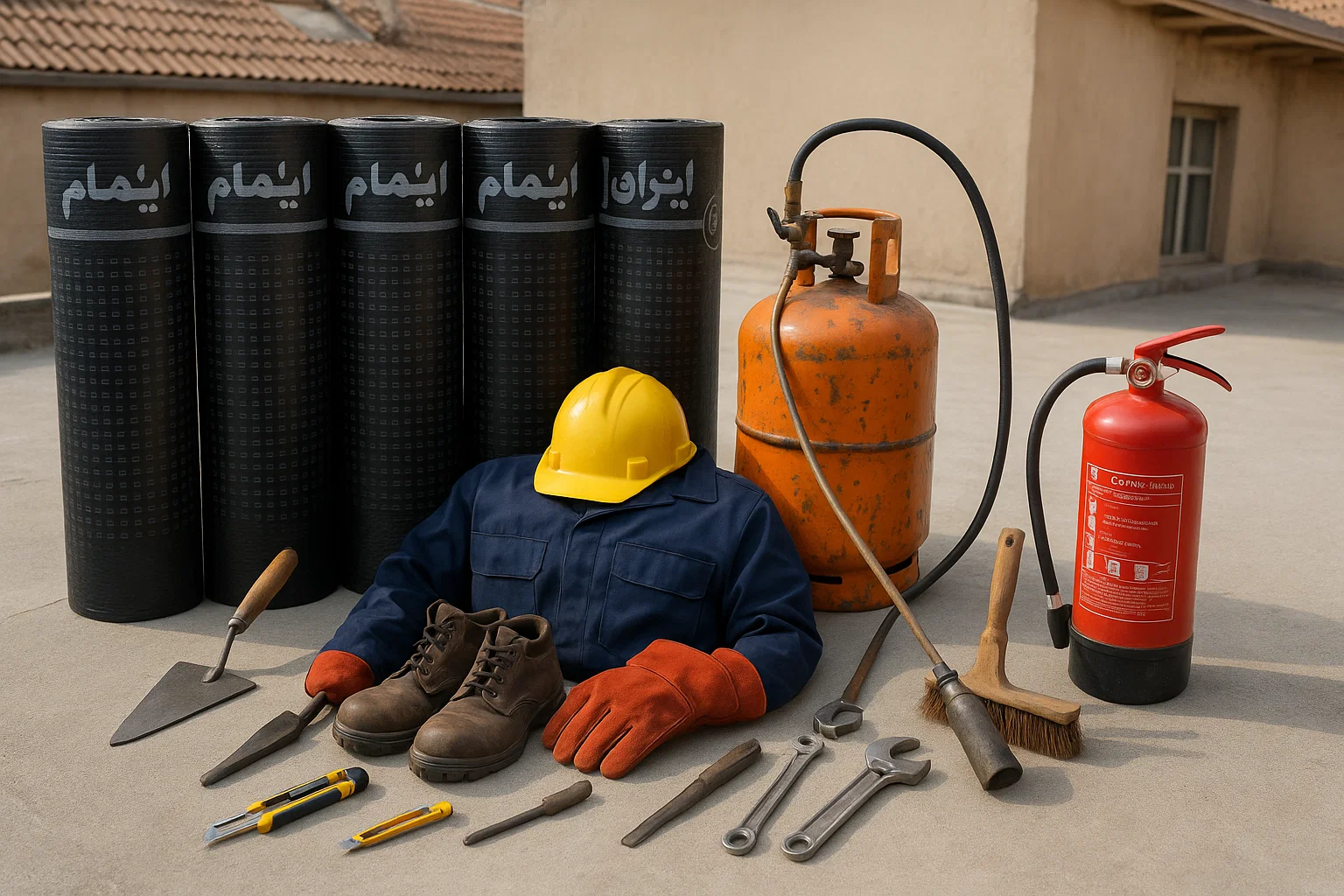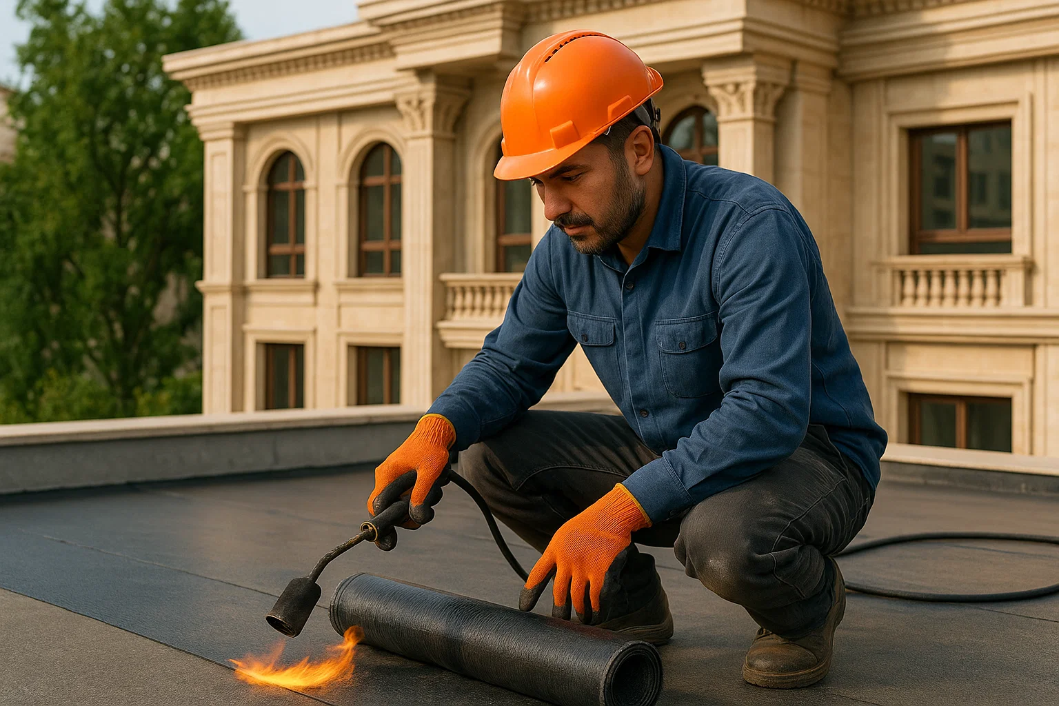 ۴. نصب رولهای ایزوگام با مشعل صنعتی | قلب عملیات عایقکاری