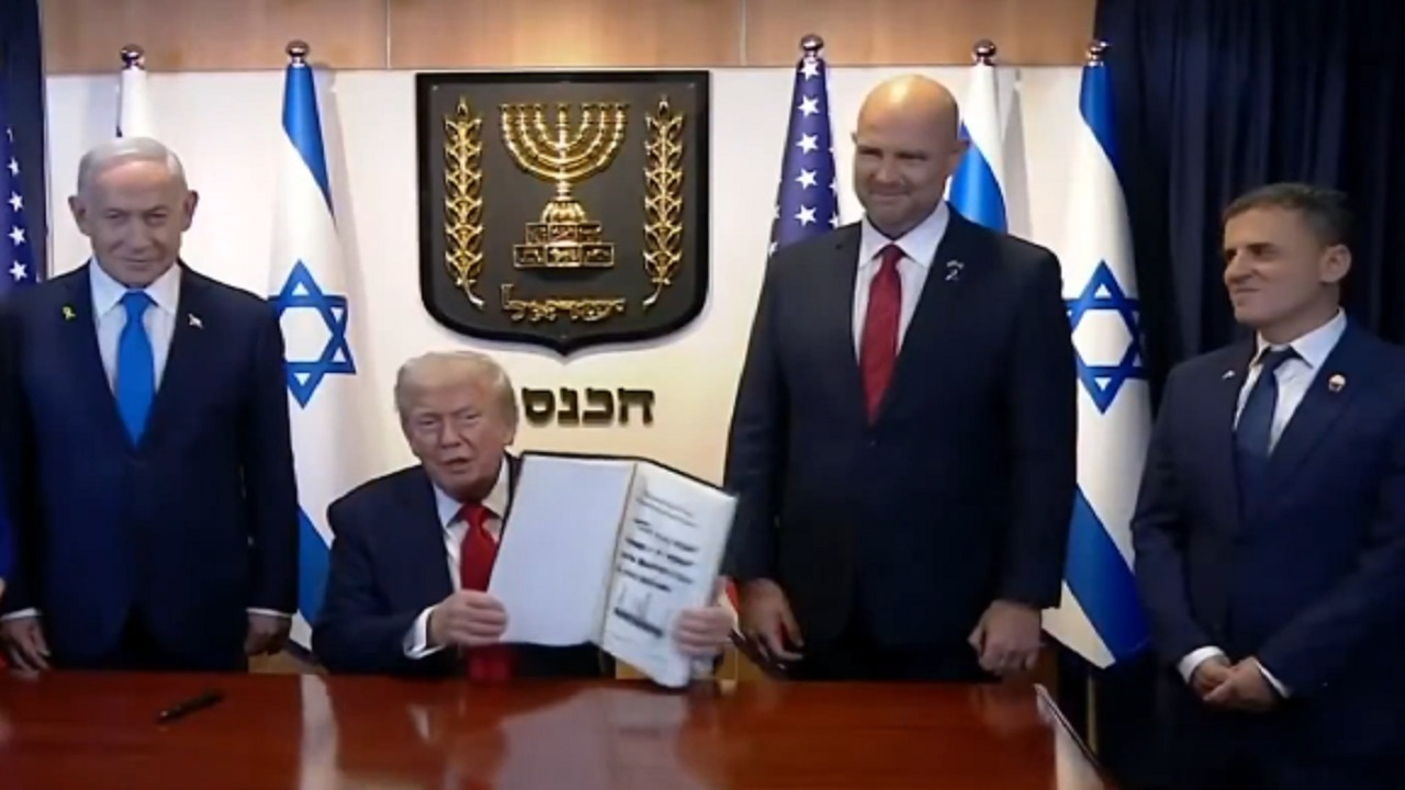 رئیس جمهور ایالات متحده هنگام ورود به کنست اسرائیل، در حالی که نتانیاهو و همسرش در کنارش بودند، در دفتر یادبود نوشت: «این افتخار بزرگی برای من است، یک روز بزرگ و زیبا. یک شروع جدید.»